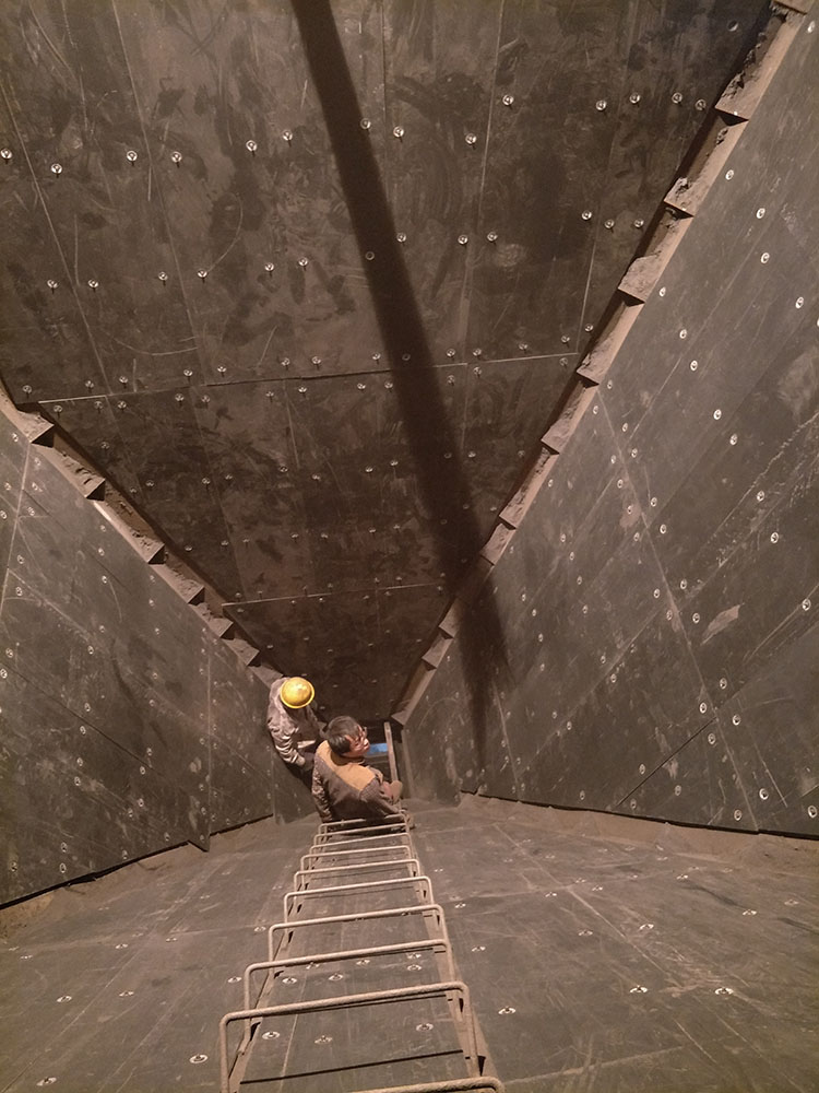 2020-04-11煤倉采用超高分子量聚乙烯襯里可
